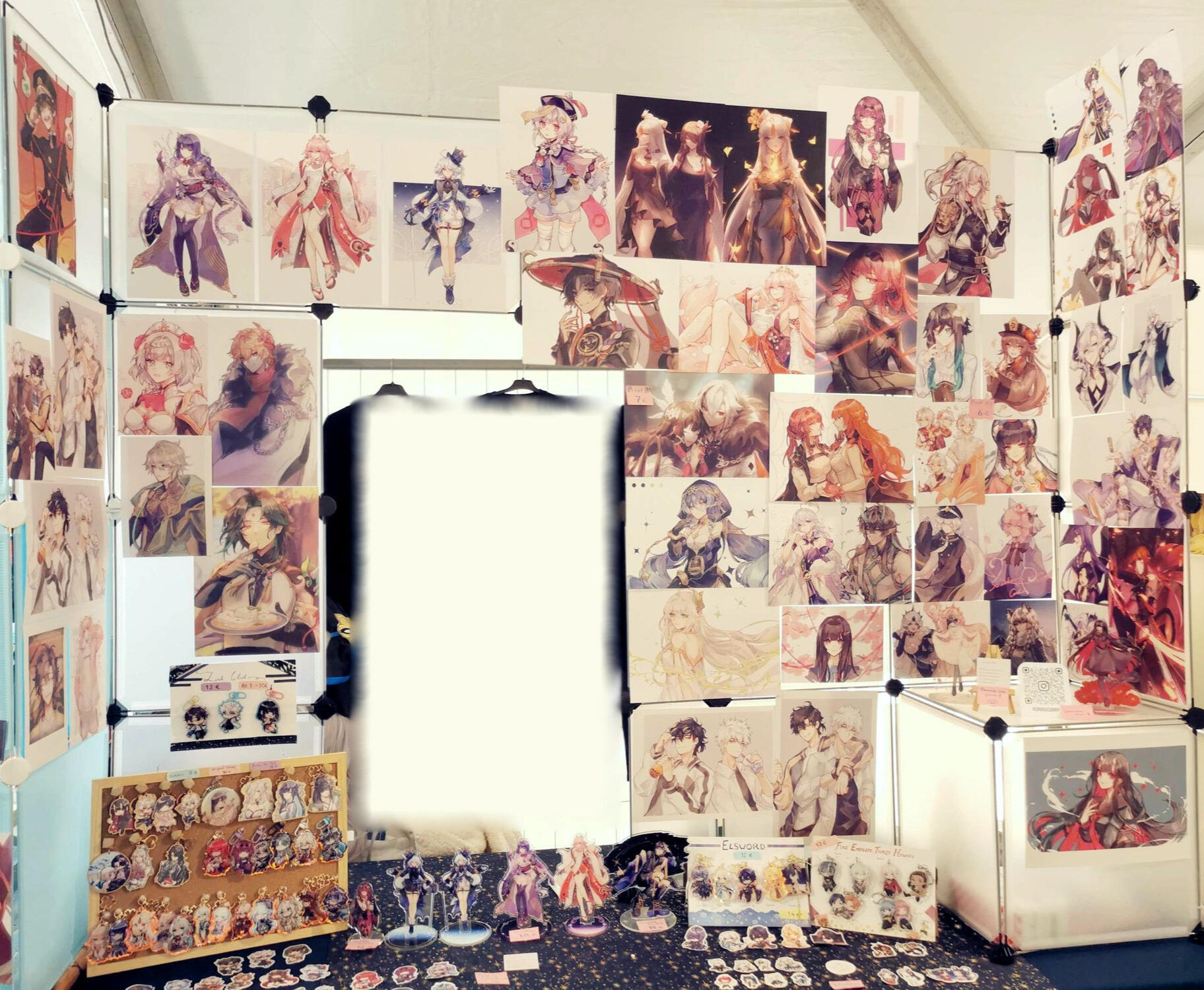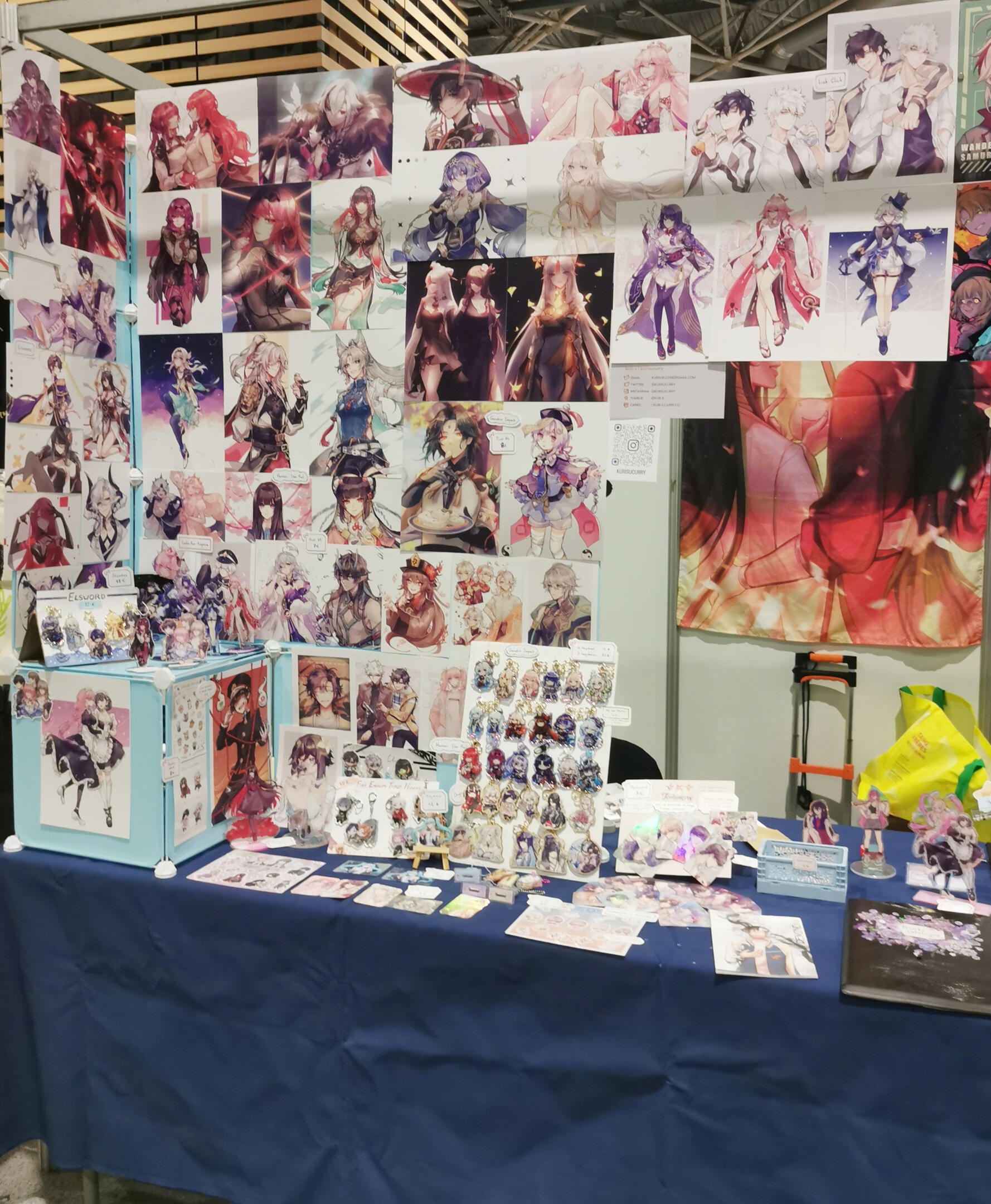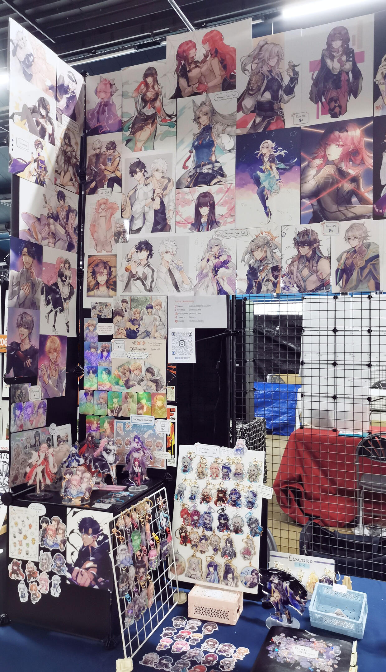 Items are divided into various categories, which all are accessible through the header: prints (paper printed illustrations), keychains (and charms), standees, photocards, stickers & misc.This can also act as my portfolio, thought it is missing some popular illustrations. If you're interested in my other arts, I'd recommend checking my socal media accounts instead (either Instagram or tumblr for illustrations, and bluesky for sketches and doodles).My previous fan booth/table in conventions: