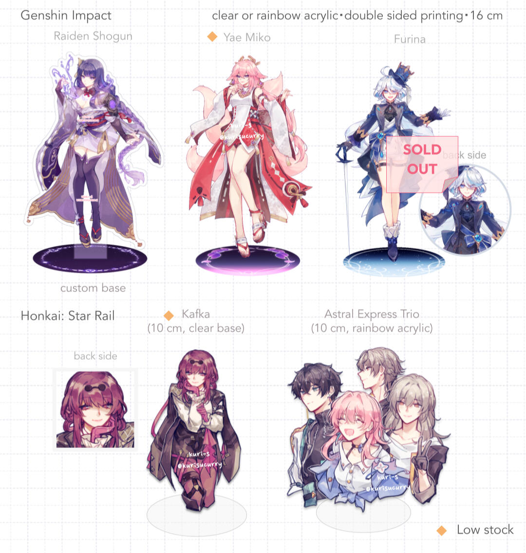 All prints are A4 size unless A5 size is mentioned.Fandoms: Honkai: Star Rail, Genshin Impact, Elsword, Link Click, Cookie Run Kingdom, Alien Stage